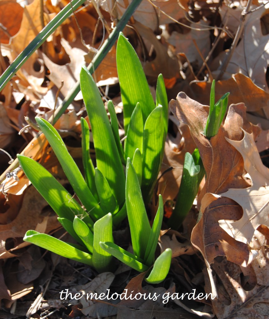 Spring bulbs that emerge with such eagerness they pierce an oak leaf.
